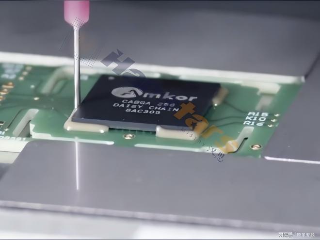 產品簡介:漢思芯片四角圍堰膠是一款單組份環氧樹脂膠粘劑,具備中溫快速固化特性。該產品具有極佳的粘著性,耐熱性、耐水汽性能優異,可靠性高,主要用于芯片四角固定,廣泛應用于BGA、IC存儲卡、陶瓷封裝及柔性電路倒裝芯片的粘結與包封。適用于高可靠性電子封裝領域。